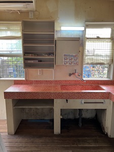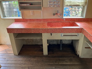 全面にタイルが施されたこだわりのキッチンでしたが、今回大がかりなキッチンリフォームは考えておられず、いいものは不要、シンプルなキッチンに入れ替えたいとのこと。