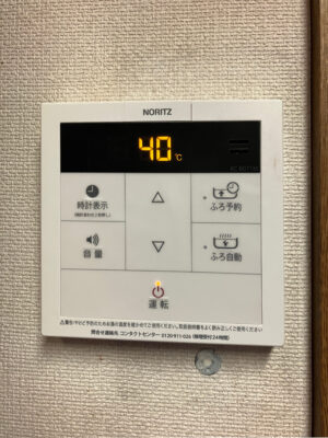 給湯器は経年15年、自動湯はりが止まらなくなることがあり、お湯の使い始めは異音がするとのことでした。