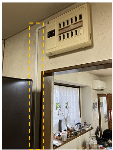 分電盤からIH専用配線を露出にて床下まで落とし、そこからは床下配線で隠蔽しております。