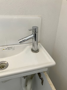 草津市にお住まいのお客様より、先日エコキュートの工事にお伺いした際にトイレの手洗い水栓交換のご相談がありました。
