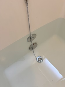 2つ穴から1つ穴への交換に伴い、浴槽の循環アダプターの交換も行いました。上の穴は使わなくなりますので、専用のバスキャップを取り付けます。