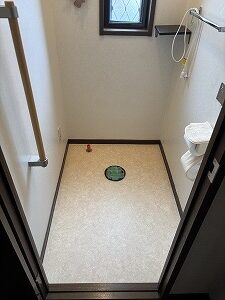 床は既設の跡が残ってしまいますので、クッションフロアーも交換しました。