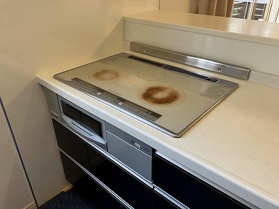 滋賀県大津市でおこなったエコキュート、インターホン、レンジフード、IHクッキングヒーターの交換の中から、キッチン周りのレンジフードとIHの交換事例をご紹介します。