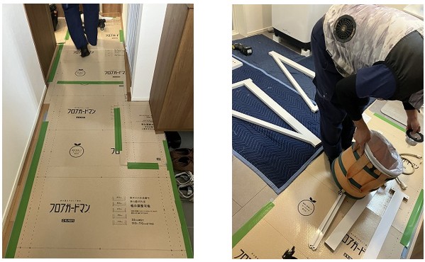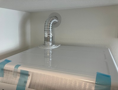 今回、ガス栓・電気コンセントはご用意いただいていたので、湿気を外に出すための排湿管用の穴開け、本体の設置を当社にておこないました。
