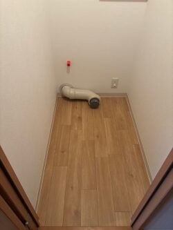 既設のトイレ、ペーパーフォルダー、タオル掛けを撤去し、床・天井・壁のクロスを張り替えます。