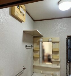 滋賀県大津市にて洗面化粧台の交換と壁クロスの貼替え工事をおこないました。