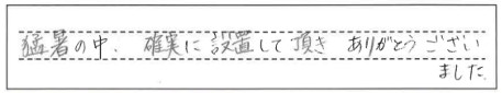 猛暑の中、確実に設置して頂き、ありがとうございました。