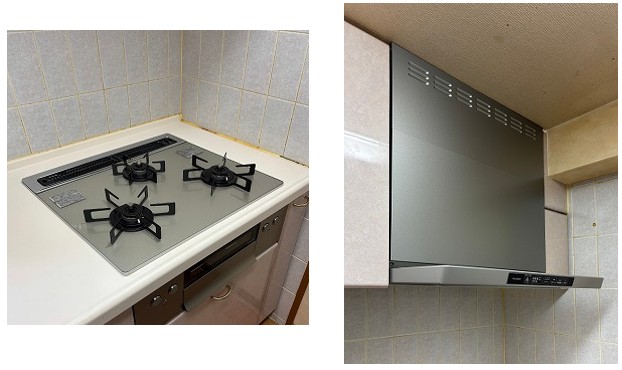 滋賀県草津市にてビルトインコンロとレンジフードの交換をおこないました。