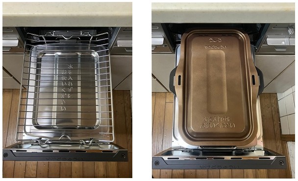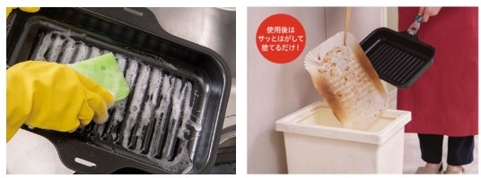 グリル庫内の油の飛び跳ねを防ぐこともでき、お手入れも簡単です。