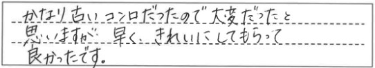かなり古いコンロだったので、大変だったと思いますが、早くきれいにしてもらっって良かったです。