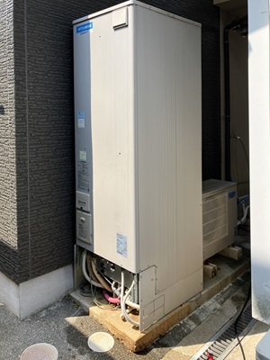 5日間仮設のガス給湯器をお使いいただいた後、改めてエコキュートの交換工事を行いました。