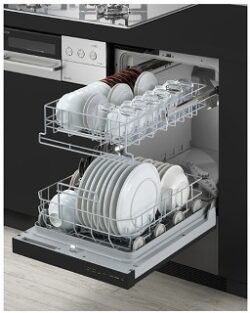 上下2段のカゴは約8人分の食器を一度に洗うことができ、フライパンなどの調理器具もまとめて洗うことができます。