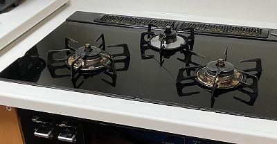 今までご使用になっていたのはリンナイ製のコンロとオーブン。コンロの天板が割れてしまい、コンロのみの交換です。