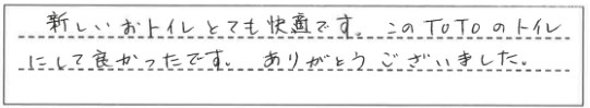 新しいおトイレとても快適です。このTOTOのトイレにして良かったです。ありがとうございました。