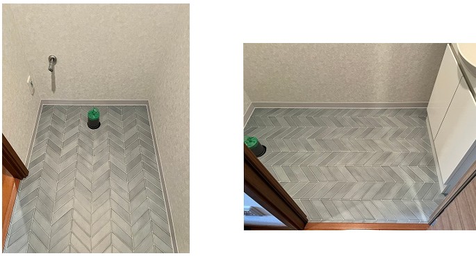 床のクッションフロアはグレーベースのヘリンボーン柄で落ちついた素敵な内装に仕上がっています✨