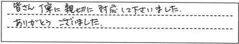 皆さん丁寧に親切に対応して下さいました。ありがとうございました。