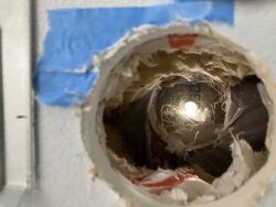2階のお部屋のエアコン新規取付に伴い、室内機と室外機を繋ぐ配管を通す穴が必要になります。