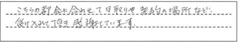 こちらの都合に合わせた日取りや契約の場所など受け入れて頂き感謝しています。