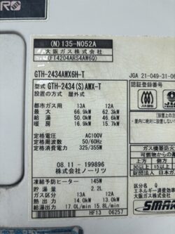 交換前:ノーリツ GHT-2434(S)AWX-T