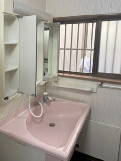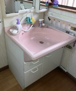少しレトロな雰囲気だったピンクの洗面台がすっきりスタイリッシュになりました。使い勝手の良さもぐっと向上し、毎日の身支度がもっと快適になるはずです。