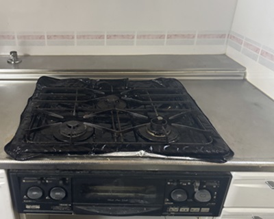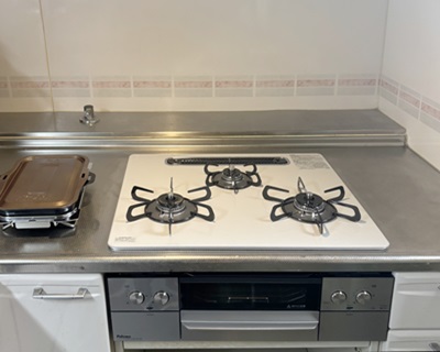 1口が点火しにくい状態。IHへの交換も検討されていましたが、管理組合から許可がおりずコンロの交換に。