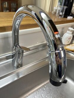 レバー操作に不具合が出ていた水栓は「タッチレス水栓」をご希望。