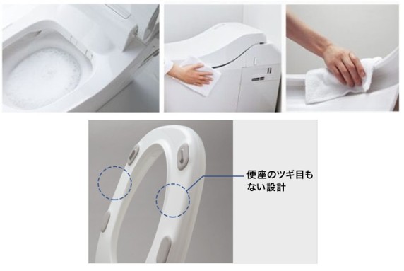 隙間がなく、凹凸の少ない形状。便器のフチ裏もないためお掃除も簡単です。