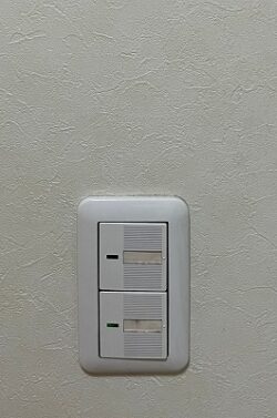 リモコンを新しく取り付け。スイッチはダブルスイッチ(換気扇+照明)からシングルスイッチ(照明)へ変更します。