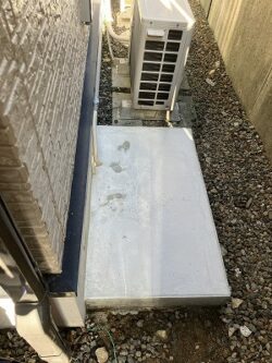 現地調査をさせていただくと、角型のエコキュートは簡易ベースに設置されており、ベースをやり直す必要がありました。