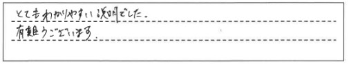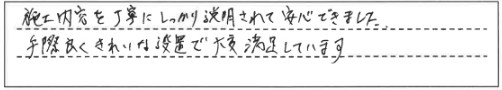 施工内容を丁寧にしっかり説明されて安心できました。手際良く、きれいな設置で大変満足しています。