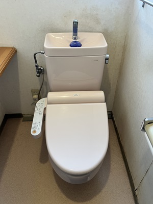 草津市、一体型トイレの交換と床材の張り替えを行いました