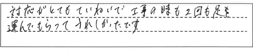 対応がとてもていねいで工事の時も2回も足を運んでもらってうれしかったです。