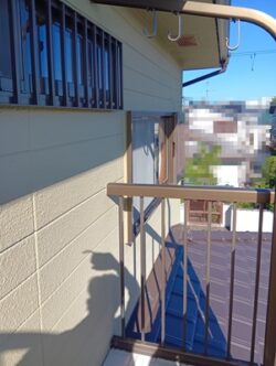 設置するお部屋には室外機の設置できるベランダなどがありませんので、隣のベランダまで配管を延長します。