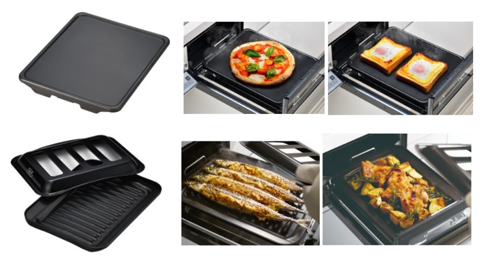 デリシアは、豊富な専用調理器具が付属でつき、オーブン料理が手軽にできるのが魅力。ゴトクも小さくなり、お手入れも簡単になります。