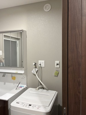 こちらのお住まいでは、乾太くん設置に必要な「ガスコンセント」や、湿気を外に逃がすための「排湿管用の穴」が新築時に用意されていました。