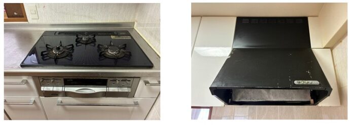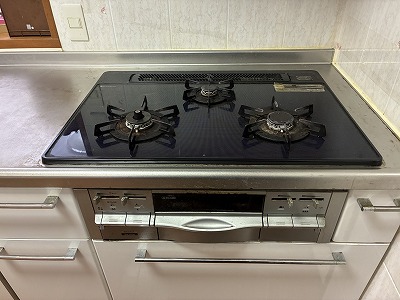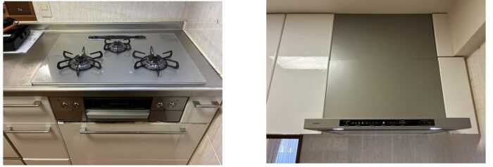 滋賀県大津市の分譲マンションにて、ビルトインコンロとレンジフード、ガス給湯器の3点交換をおこないました。