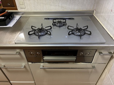 経年15年のコンロは不具合はないそうですが、お掃除のしやすいものに交換をご希望。合わせて、ガス給湯器も一緒に交換されたいとのこと。
