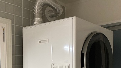 『乾太くん』は、乾燥する際に湿気が発生するため、ダクトを排湿管用の穴に通し、湿気を外に出します。