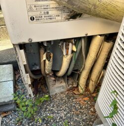 配管カバー内の様子です。配管には凍結防止用に保温筒もしっかりと巻かせていただいております。