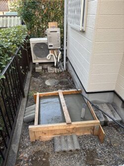 既設のエコキュートは、ベースが一部分ないところがあり、新しく作り直す必要がありました。
