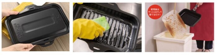 使用後は、ラクックグランを洗うだけ!セラミックコートで簡単に汚れが落ち、クッキングシートを使用すると、サッとはがして捨てるだけで、さらにお手入れが簡単ですよ。