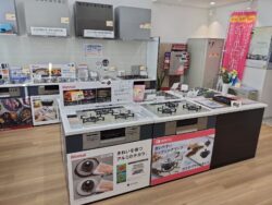 経年14年の給湯器からエラーがでており、お湯は出るそうですが、冬場の急な故障に備えて交換をお考え。同時にコンロの交換も検討されていたため、ショールームをご案内し実際の機器を見て選んでいただきました。