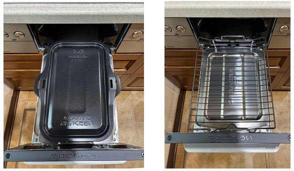 お掃除のしやすさを重視され、、各メーカーのグリル専用容器を比較されたところ、深さもあり油の飛び跳ねも防げるパロマのラクックグランが一番使いやすそうとのことで、パロマ製に絞ってご案内。