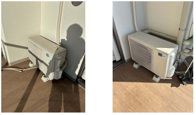 エアコンが1台になったため室外機も1つ撤去します。ベランダが広くなり空いたスペースは有効活用できますね。