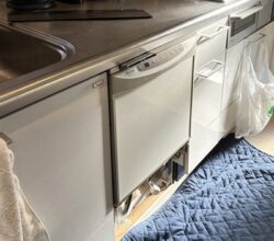 大津市のお客様のお宅にてリンナイ・フロントオープン式のビルトイン食器洗い乾燥機交換を行いました。