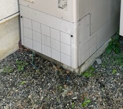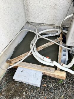 まず現地調査にうかがうと、エコキュートを設置するためのベースが薄く、タンクが満水時には500kg以上になるエコキュートを支えるには難しい状態でした。