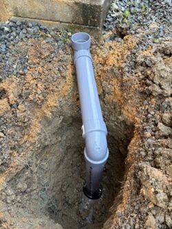今回は、雨水管から分岐して排水配管を新たに設け、適切に排水できるよう改善しました。