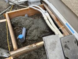 枠を組み、コンクリートを流し込んで新しい基礎を作成します。