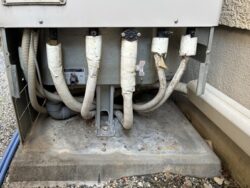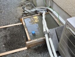 既設のエコキュートは簡易的な基礎の上に本体が設置されており、現在の設置基準を満たしていない状態でしたので、土台のやり替えをご提案し、工事を進めることになりました。