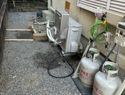 ご連絡の翌日、現場確認にお伺い。エコキュートの交換まで数日かかるため仮設のガス給湯器と仮設のガスボンベを設置し、お湯が出る状態に対応しました。